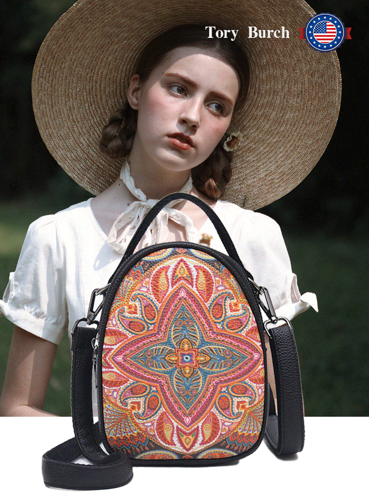 حقيبة الكتف مرسومة باليد على الطراز العرقي من الماركة البريطانية